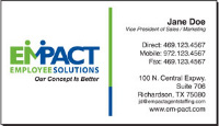 We are not an on-line template driven business card generating system that robotically cranks out fifty thousand business cards a day that all look the same. We are not the traditional printers with ink-stained smocks located in an industrial park. We are a retail style print shop staffed by graphic artists trained in the design and layout of custom business cards. On-line or in person, you can sit down with one of our talented graphic artists for 10 minutes or 2 hours, whatever it takes to get the custom business card design you want. Click here to see more custom business cards we designed in Dallas, TX.